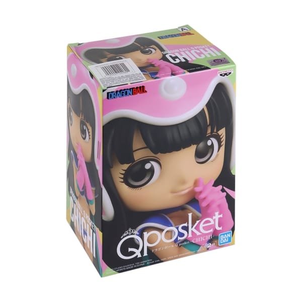 A linha de figuras Dragon Ball Q Posket continua com este Chi-Chi do Dragon Ball original. Esta variante mostra ela em um traje azul-petróleo e azul com touca rosa e outros detalhes.