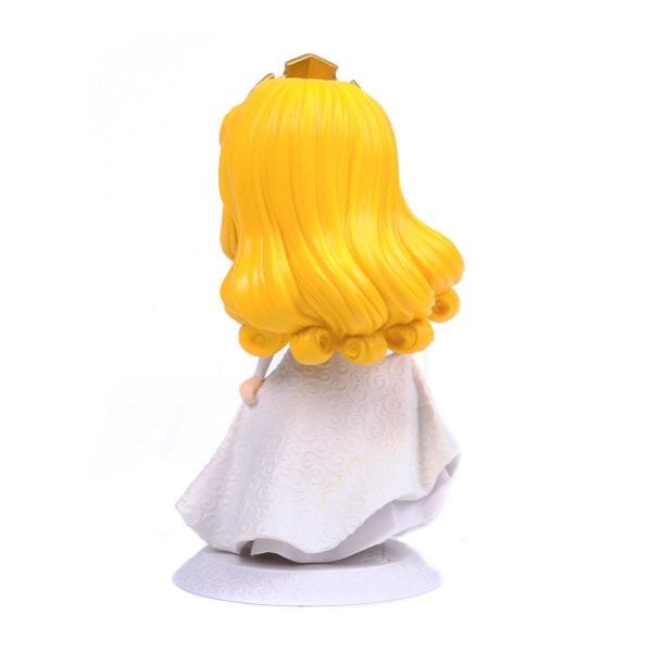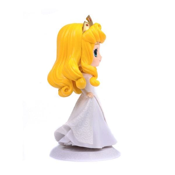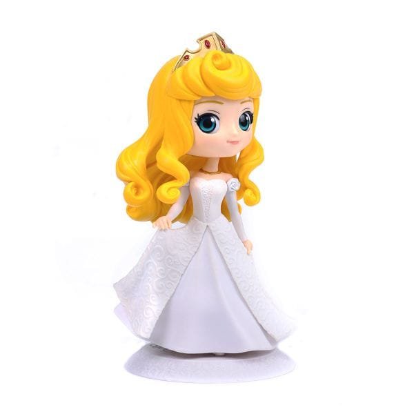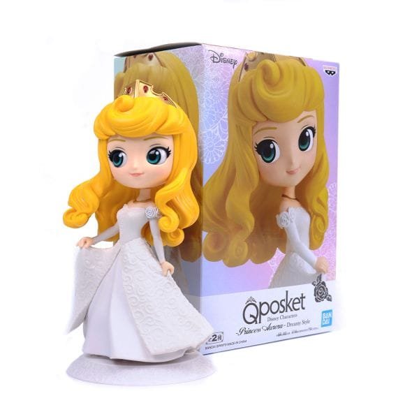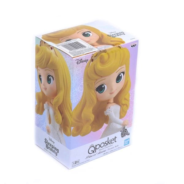 Princesa Aurora se junta à linha de bonecos de personagens da Disney Q Posket mais uma vez, desta vez em um estilo de sonho! A Bela Adormecida tem cerca de 14 centímetros de altura em um vestido de noiva branco creme com seu esquema de cores normal.
