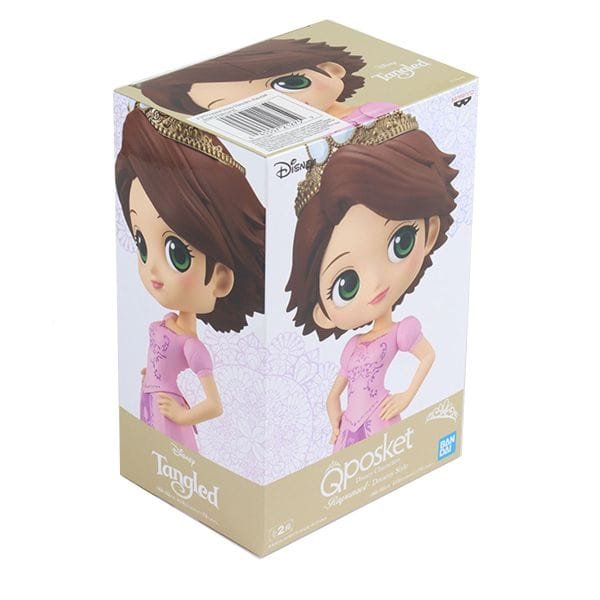 Princesa Rapunzel se junta à linha de bonecos de personagens da Disney Q Posket mais uma vez, desta vez em um estilo de sonho! A princesa tem cerca de 14 centímetros de altura em um vestido de noiva violeta com seu esquema de cores variante.