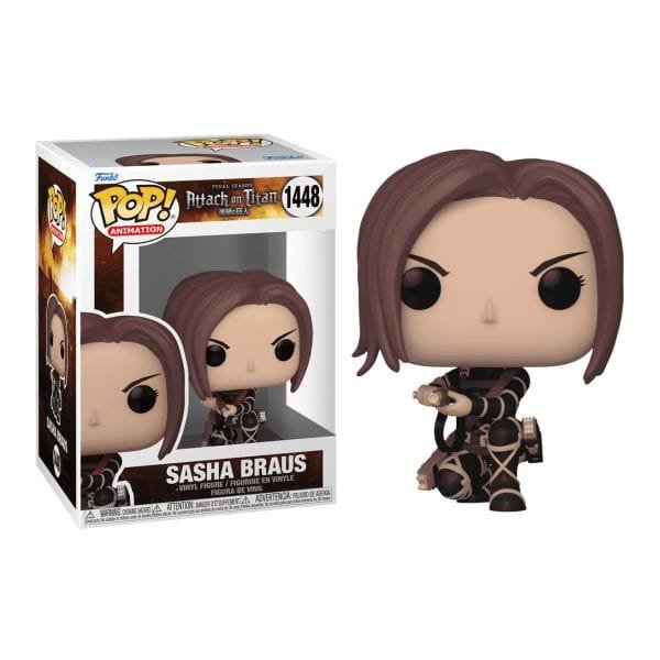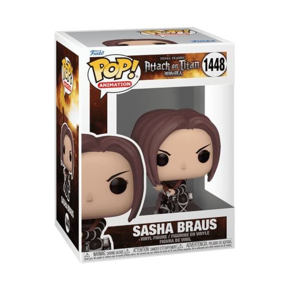 O destino da humanidade está em jogo. Prepare sua coleção Attack on Titan para a batalha com Pop! Sasha Braus. Ela é uma atiradora talentosa e um membro essencial para recrutar para o seu regimento. A figura de vinil tem aproximadamente 9,52 cm de altura.